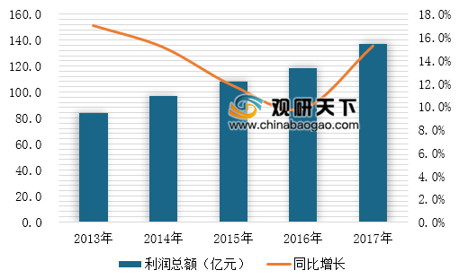 行业发展战略大调整,全行业利润总额保持逐年增长。2017年,玻纤电子纱产品价格持续在高位运行,玻璃纤维行业利润总额为136.7亿元,同比增长24.7%。